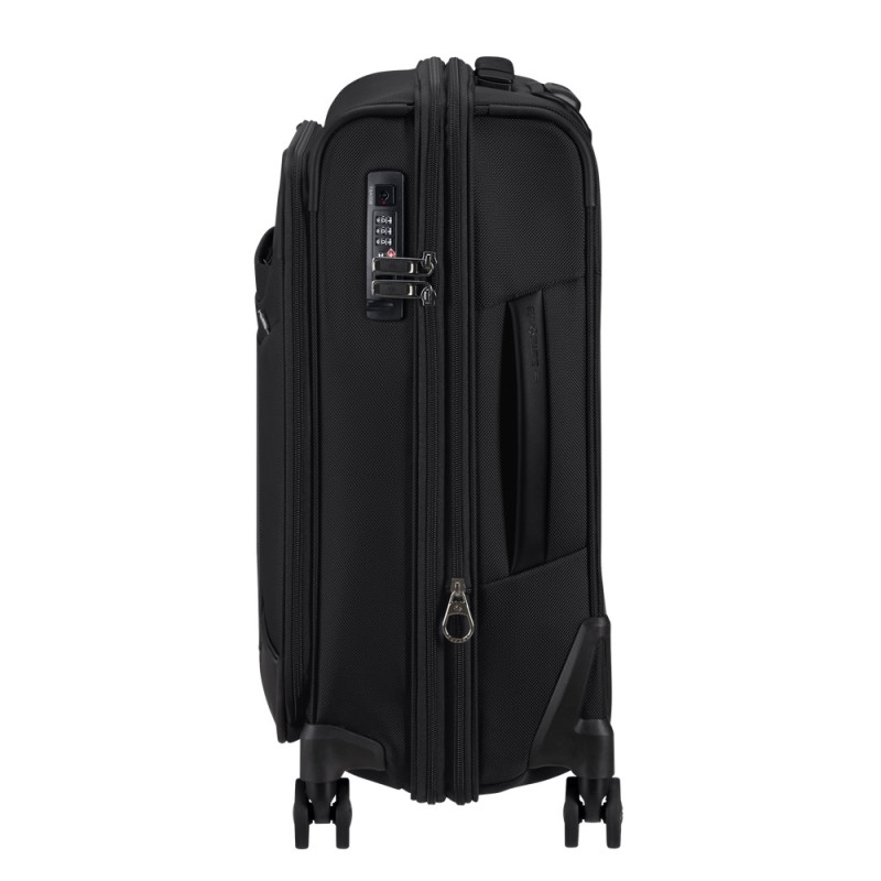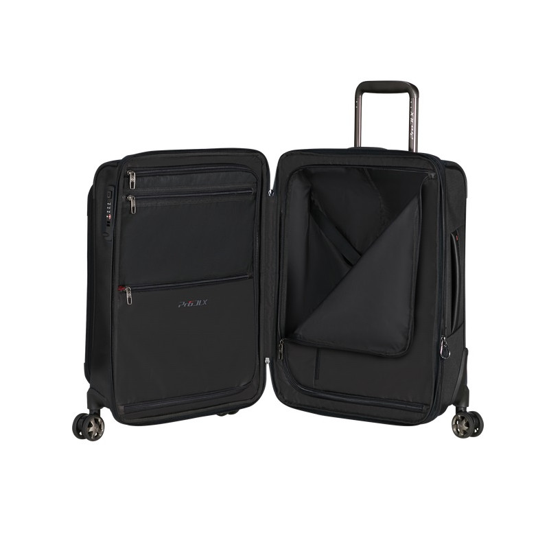 The high-end business collection by Samsonite, Pro DLX 6, has been completely redesigned, now more trendy, lightweight, and colorful than ever! Its modern design, internal organization, and leather details come together to offer a comfortable and uncompromising travel experience. From smart backpacks to wheeled products, to coordinated wallets, Pro-DLX6 is the answer to the current trends and needs of the business world. Features: Model: Suitcase (4 wheels) Material: Exterior: Ballistic Nylon / Interior: 100% Recycled Polyester (RPET) Color: Black Size: 55 x 40 x 23 cm Size: Carry-On Volume: 41/46 L Average Load Capacity: Approximately 10 kg