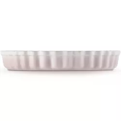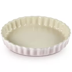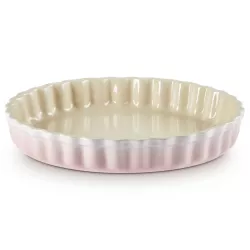 RED CHERRY FLUTED FAN DISH, STONEWARE - LE CREUSET Tarts. Quiches. Pies. Create them all in our fluted flan dish. Both practical and stylish, its curving sidewall will add a touch of character to finished pastries while also helping crusts bake perfectly. The stoneware distributes heat evenly, for the best cooking results. Exceptional durability: resists blows and stains. Non-porous enamel surface: it does not absorb odors or flavors. Ease of cleaning. Compatible with oven, microwave, freezer and dishwasher. Highly resistant ceramic: from -23ºC to 260ºC. It keeps both heat and cold.
