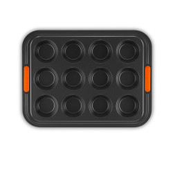 Delight friends and family, with delicacies by the dozen. This hardworking muffin tray’s twelve deep cups are ideal for making muffins, cupcakes, brioches, mini quiches and a whole host of other sweet and savoury starters and desserts. - Safe lifting: we've added heat-resistant silicone inserts on the rim for better grip and easier lifting. - Ready for the heat: our bakeware is heat resistant up to 240°C. - Material: Non-stick Carbon Steel - Dimensions: 40 x 30 cm - Code: 94100140000000