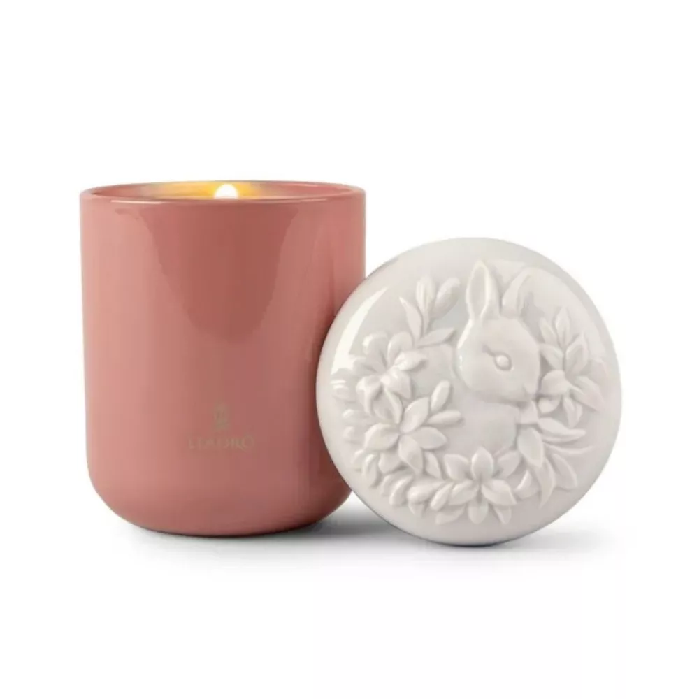 The Sweet Memories Rabbit candle by Lladro' combines symbolic design with a refined sensory experience, dedicated to the Rabbit of the Chinese zodiac for 2023. The glass container is topped with a white porcelain lid, finely engraved with exceptional craftsmanship. The Sweet Memories fragrance releases soft notes of vanilla, honey and red fruits, creating a warm and elegant atmosphere. A decorative scented candle, also perfect as a refined gift idea.