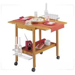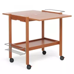 The Newton wooden trolley by Foppapedretti easily transforms into a table thanks to its convenient fold-out design, expanding the top surface. Equipped with a spacious lower shelf and side metal baskets, it offers optimal organization. The solid beechwood frame is durable and can be moved effortlessly with scratch-resistant, swiveling, and lockable rubber wheels, as well as an ergonomic handle.