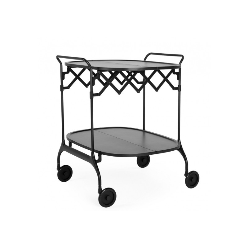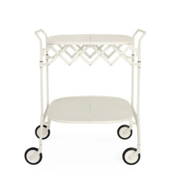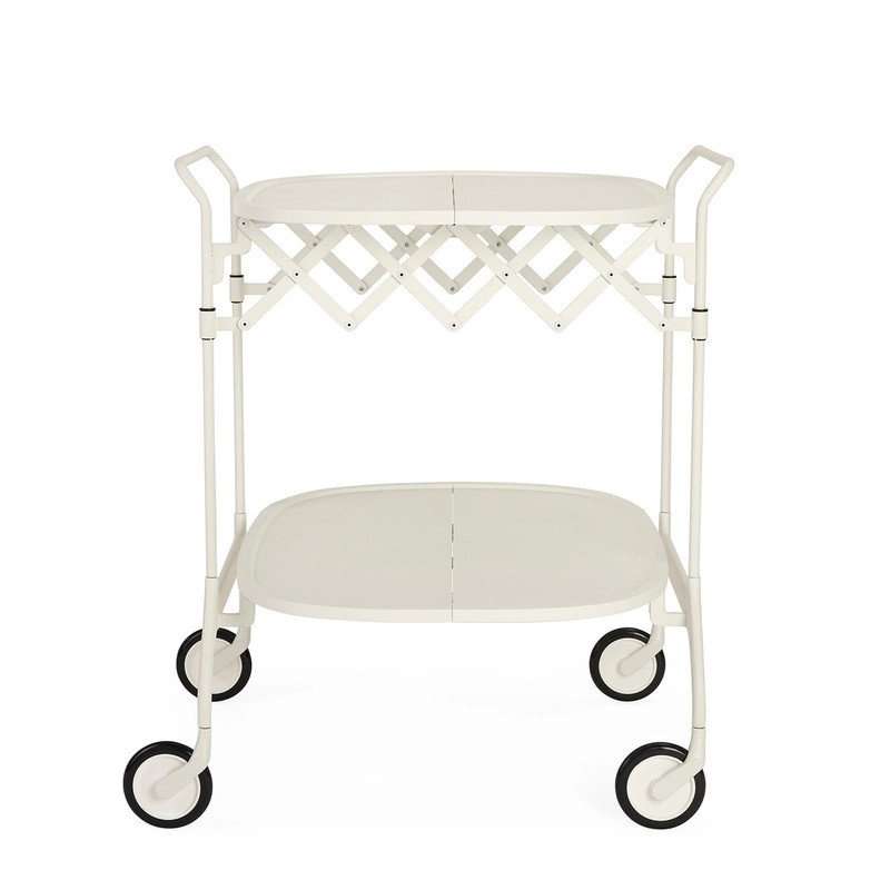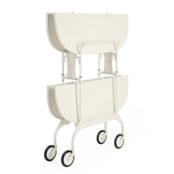 The Gastone trolley is renewed with a matte and soft touch finish, available in white, black, cream, and burgundy. This foldable, lightweight, and easy-to-move trolley has been the perfect companion for your living space for 30 years. It is ideal for buffets and aperitifs or as a small side table. Structure:Painted steel and painted die-cast aluminum base Shelves: Nylon loaded with fiberglass and scratch-resistant paint Sku: 04473/03 and 04473/09