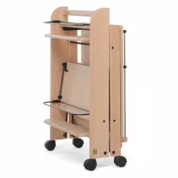 FOOD SERVICE TROLLEY, 2 LEVELS - FOPPPA PEDRETTI This trolley features two spacious food trays with convenient side panels. When closed, it stands upright, keeping glasses and bottles securely in their compartments. The structure is made of solid wood and equipped with swivel wheels. Dimensions WxHxD: Open: 75 x 76 x 49 cm Closed: 27 x 76 x 49 cm