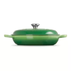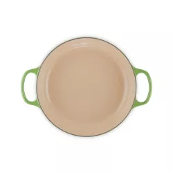 The Le Creuset Evolution shallow cast iron casserole is a perfect blend of timeless design and outstanding performance. Crafted from enameled cast iron, it ensures even heat distribution and retention, delivering rich, flavorful results every time. The tight-fitting lid locks in moisture and aromas, while the ergonomic wide handles provide a secure grip, even with oven gloves. Its heat-resistant knob (up to 260°C) makes it suitable for the oven, stove, and grill. The light beige enamel interior allows for effortless cleaning, and its elegant aesthetic adds a colorful touch to any kitchen. A true icon of French craftsmanship, backed by Le Creuset’s lifetime guarantee.