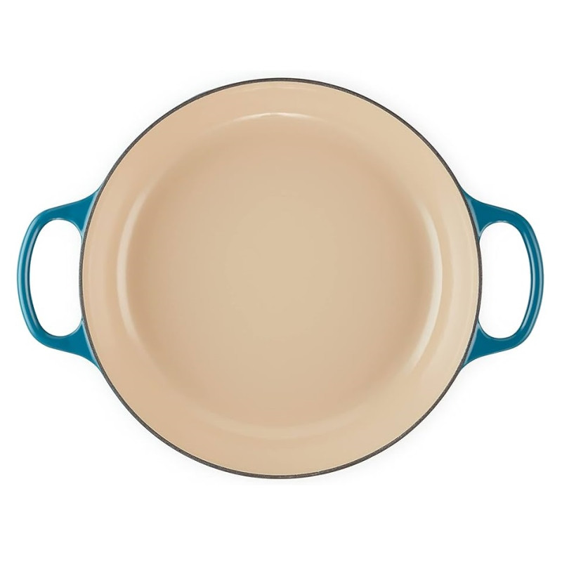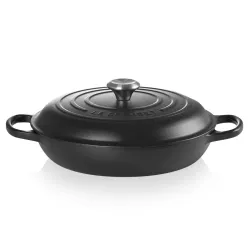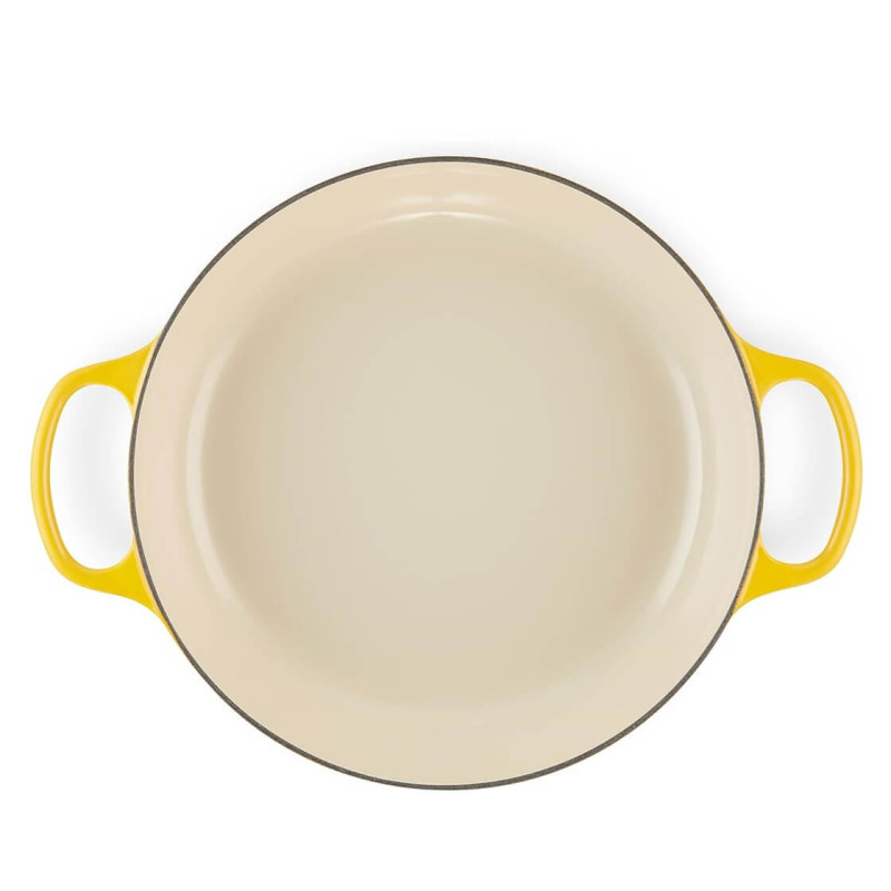 The Le Creuset Evolution shallow cast iron casserole is a perfect blend of timeless design and outstanding performance. Crafted from enameled cast iron, it ensures even heat distribution and retention, delivering rich, flavorful results every time. The tight-fitting lid locks in moisture and aromas, while the ergonomic wide handles provide a secure grip, even with oven gloves. Its heat-resistant knob (up to 260°C) makes it suitable for the oven, stove, and grill. The light beige enamel interior allows for effortless cleaning, and its elegant aesthetic adds a colorful touch to any kitchen. A true icon of French craftsmanship, backed by Le Creuset’s lifetime guarantee.