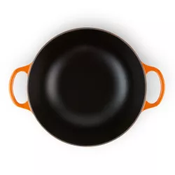 The Le Creuset Enameled Cast Iron Marmite is perfect for cooking a variety of delicious dishes, including fondue bourguignonne and fish soup, thanks to its rounded walls that ensure even heat distribution. Made from enameled cast iron, it offers optimal heat retention and is known for its durability and hygiene, as it does not absorb moisture, flavors, or odors. The pot is compatible with all heat sources, including ovens, stovetops, and grills. It is easy to clean, and the stainless steel knob is heat-resistant up to 260°C. The handles are designed for a secure grip, and the pot comes with a lifetime guarantee. It is dishwasher safe and freezer friendly.