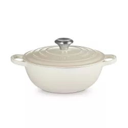 The Le Creuset Enameled Cast Iron Marmite is perfect for cooking a variety of delicious dishes, including fondue bourguignonne and fish soup, thanks to its rounded walls that ensure even heat distribution. Made from enameled cast iron, it offers optimal heat retention and is known for its durability and hygiene, as it does not absorb moisture, flavors, or odors. The pot is compatible with all heat sources, including ovens, stovetops, and grills. It is easy to clean, and the stainless steel knob is heat-resistant up to 260°C. The handles are designed for a secure grip, and the pot comes with a lifetime guarantee. It is dishwasher safe and freezer friendly.