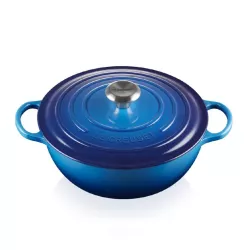 The Le Creuset Enameled Cast Iron Marmite is perfect for cooking a variety of delicious dishes, including fondue bourguignonne and fish soup, thanks to its rounded walls that ensure even heat distribution. Made from enameled cast iron, it offers optimal heat retention and is known for its durability and hygiene, as it does not absorb moisture, flavors, or odors. The pot is compatible with all heat sources, including ovens, stovetops, and grills. It is easy to clean, and the stainless steel knob is heat-resistant up to 260°C. The handles are designed for a secure grip, and the pot comes with a lifetime guarantee. It is dishwasher safe and freezer friendly.