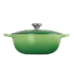 The Le Creuset Enameled Cast Iron Marmite is perfect for cooking a variety of delicious dishes, including fondue bourguignonne and fish soup, thanks to its rounded walls that ensure even heat distribution. Made from enameled cast iron, it offers optimal heat retention and is known for its durability and hygiene, as it does not absorb moisture, flavors, or odors. The pot is compatible with all heat sources, including ovens, stovetops, and grills. It is easy to clean, and the stainless steel knob is heat-resistant up to 260°C. The handles are designed for a secure grip, and the pot comes with a lifetime guarantee. It is dishwasher safe and freezer friendly.