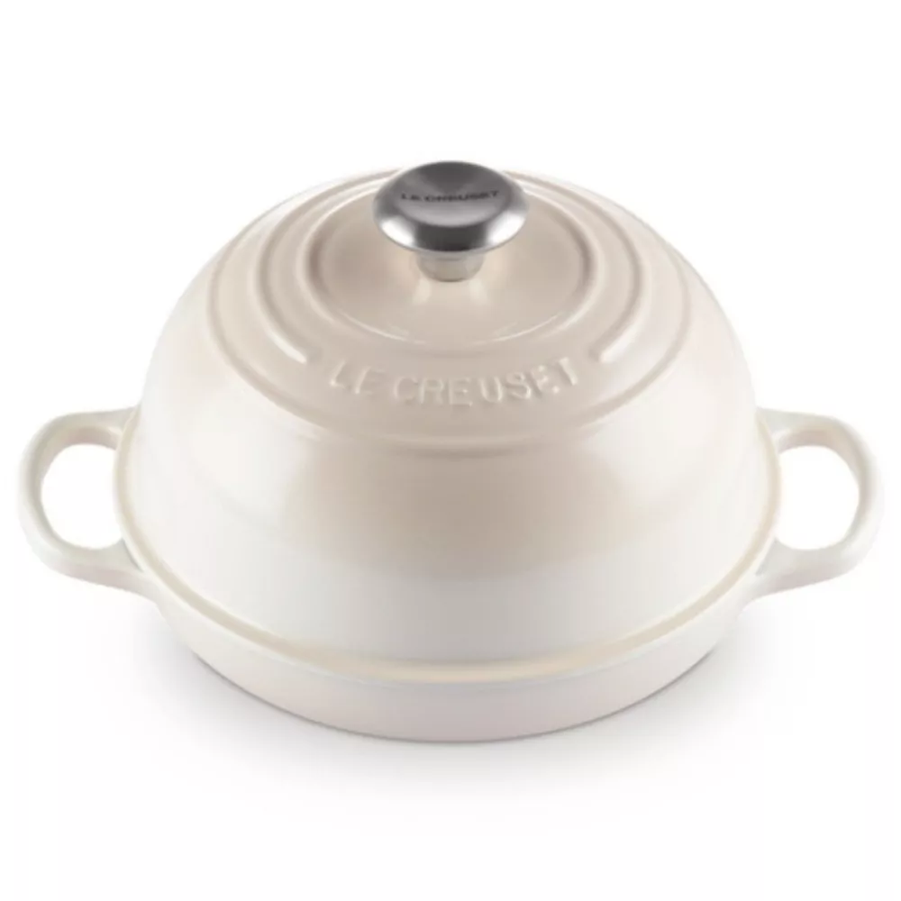 Baking homemade bread has never been easier. Made from legendary enameled cast iron, this cocotte ensures professional-quality results. The dome-shaped lid traps steam, allowing for superior rise and an irresistible flavor, while the shallow base creates a crispy, golden crust with the signature Le Creuset three-ring design.