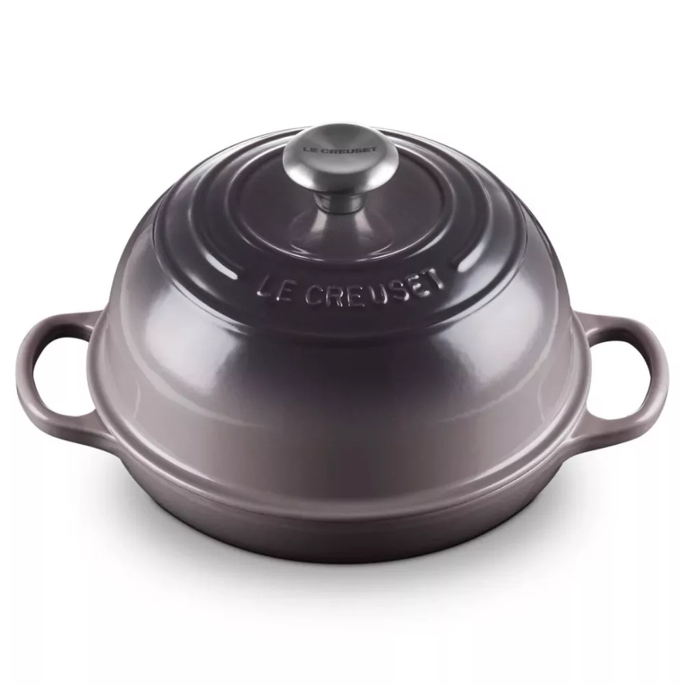 Baking homemade bread has never been easier. Made from legendary enameled cast iron, this cocotte ensures professional-quality results. The dome-shaped lid traps steam, allowing for superior rise and an irresistible flavor, while the shallow base creates a crispy, golden crust with the signature Le Creuset three-ring design.