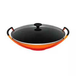 Elegant and versatile, this enameled cast iron wok is perfect for preparing delicious Asian dishes and recipes from around the world. The glass lid allows you to monitor cooking without interruption, preserving flavors and moisture.