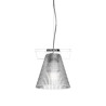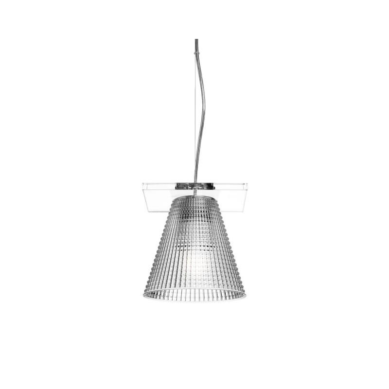 Kartell Light-Air suspension lamp by EUGENI QUITLLET Light-Air, the "illusionist" table lamp that with its suspended light escapes the law of gravity evolves into functionality and aesthetics. Light-Air is essential, modern and rational, but at the same time produces a magical effect. In the table model, its structure is a strong graphic sign, composed of a rectangular frame in transparent or mass-colored thermoplastic technopolymer, which houses a conical parabola now enriched with a new version with a diffuser sculpted in the same plastic material. To this is also added an unusual suspension model, entirely in transparent crystal color with a sculpted parabola or with a conical diffuser covered in pleated fabric. Material Structure: Transparent Thermoplastic Technopolymer dimensions Height: 18 cm Diameter: 14 cm Unit weight: 0.48 kg