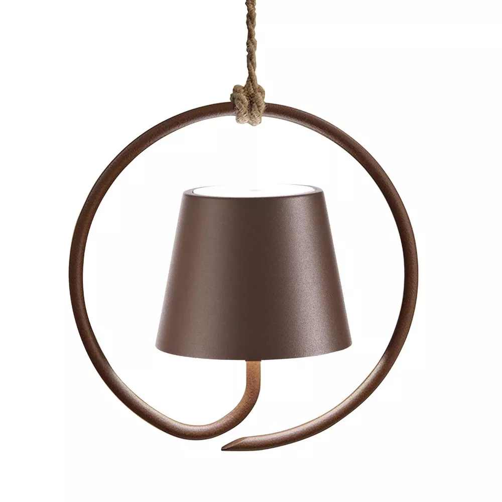 Poldina is a battery-operated, portable, and rechargeable suspension lamp. The touch control on the top allows you to turn it on, adjust brightness, and select the light color temperature (2200K, 2700K, 3000K). The magnetic head can be easily removed and recharged on its included contact charging base. Suitable for outdoor use thanks to its IP54 protection rating. Sku: LD0686R3