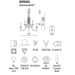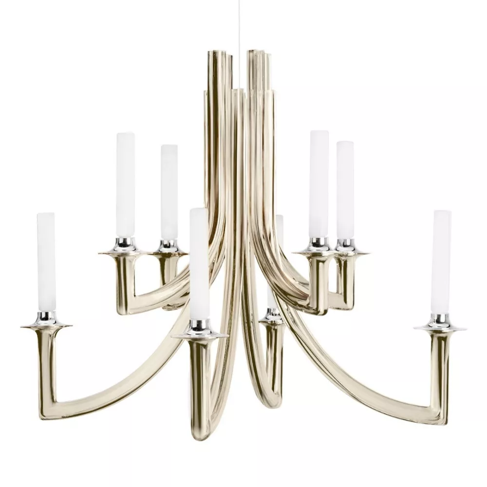 The Khan suspension lamp by Kartell, designed by Philippe Starck, reinterprets the classic chandelier through a contemporary lens, blending eighteenth century inspiration with modern minimalism. The result is a striking yet refined lighting piece, where decorative elegance meets advanced technology. Made of metallized polycarbonate 2.0 from renewable raw material, Khan expresses innovation and visual lightness, becoming a strong focal point for interior spaces. Perfect for living rooms and dining areas, it also stands out as a distinctive design gift idea.