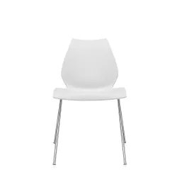WHITE CHAIR, "MAUI", 2870/2M - KARTELL Maui chairs form a family rich in many chromatic and formal hard and soft variants, able to satisfy specific needs, in collective spaces or in domestic environments. Thanks to its design, the Maui chair is stackable and can be combined with other seats of the same type, row by row, indefinitely thanks to a simple rear hook. Features and functionality Stackable max 7 pieces Materials and construction Body / armrests: batch-dyed polypropylene Structure: chromed steel Tablet: stratified laminate H.P.L. Measurements Width .: 55cm Height .: 77cm Depth .: 52cm Seat height: 45cm