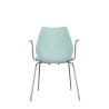 LIGHT BLUE CHAIR, "MAUI", 2872/8M - KARTELL The elegant line, the sobriety of the colors and the practicality of use make the Maui chair a project extremely versatile, able to respond to the most varied needs of the contract and residential market. Maui chairs form a family rich in many chromatic and formal variations, able to satisfy specific needs, in collective spaces such as the office, laboratories, waiting rooms, bars and restaurants, conference and meeting rooms, or in environments servants such as the dining room, children's room and study. The monocoque seat / backrest in polypropylene is fixed on a chromed steel structure. Features and functionality Stackable max 5 pieces Materials and construction Body / armrests: batch-dyed polypropylene Structure: chromed steel Tablet: stratified laminate H.P.L. Measurements Width: 58cm Height: 77cm Depth: 52cm Seat height: 45cm Armrest height: 66cm