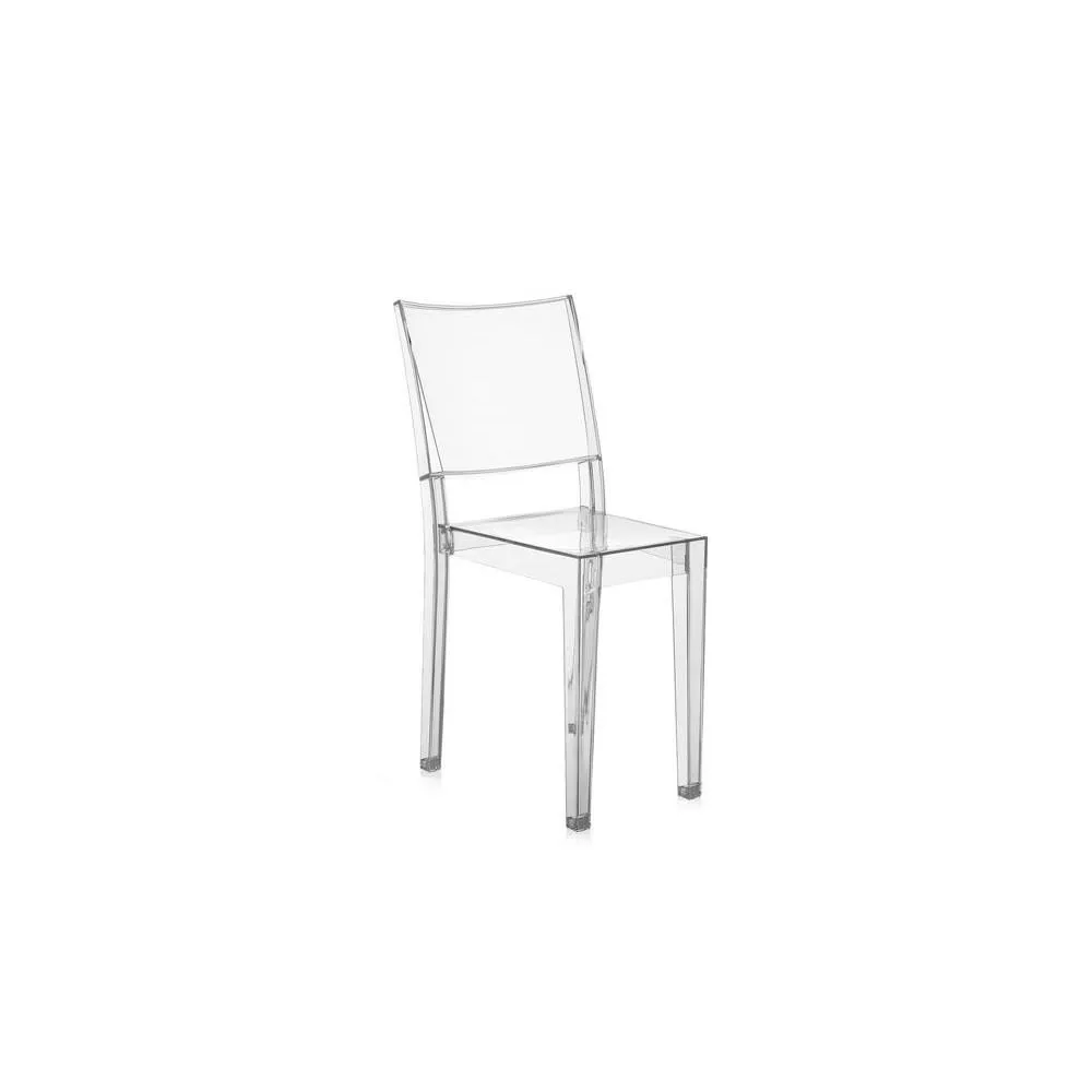 Kartell La Marie chair by PHILIPPE STARCK The first completely transparent chair in the world, made of polycarbonate in a single mold. La Marie combines an essential design and a structure of exceptional strength, the lightness and impalpability of its image. A brilliant combination of lightness and solidity, the result of careful and meticulous research on the material, shock resistant polycarbonate. In addition to the crystal version, La Marie is also available in the three fluorescent colors: violet, light yellow and light orange. Material Structure: Transparent or mass-colored polycarbonate dimensions Width: 38.7 cm Depth: 52.5 cm Height: 87.5 cm Seat height: 46 cm Unit weight: 3.5 kg