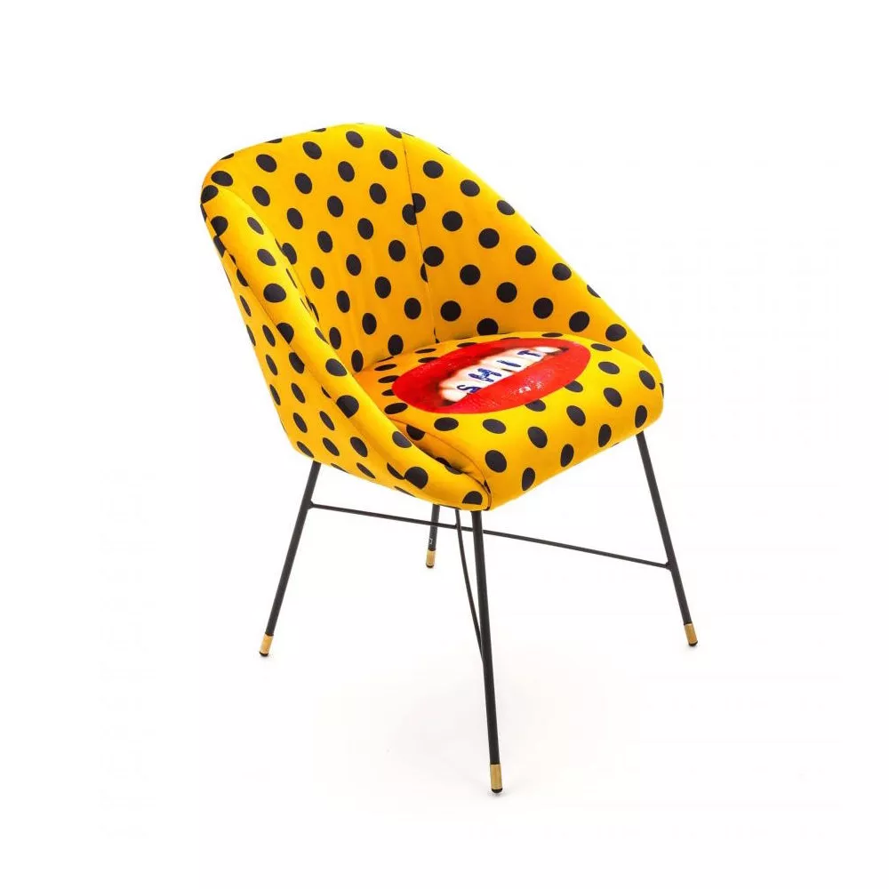 Design: Toiletpaper Material: fabrics in polyester, frame in wood with polyurethane padding and metal Size: Cm 60 x 50 h. 72
