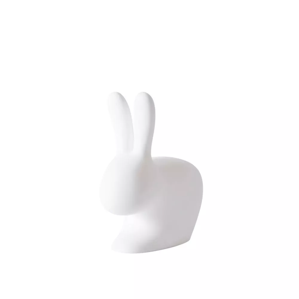 RABBIT BABY CHAIR, 90001 - QEEBOO Everyone needs a friend who listens carefully, and here is our little rabbit-shaped chair! Rabbit Chair Baby is the smaller version of Qeeboo's original rabbit-shaped chair, designed for children's enjoyment. It can be used to sit while leaning against the rabbit's ears or on the opposite side, riding it and resting the forearms on its ears. Material: Polyethylene Dimensions: 45 x 26 x 53 cm Weight: 2 kg Seat Height: 30 cm