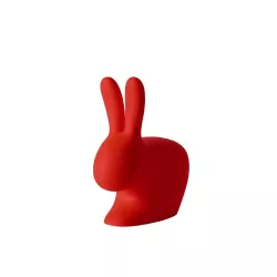 RABBIT BABY CHAIR, 90001 - QEEBOO Everyone needs a friend who listens carefully, and here is our little rabbit-shaped chair! Rabbit Chair Baby is the smaller version of Qeeboo's original rabbit-shaped chair, designed for children's enjoyment. It can be used to sit while leaning against the rabbit's ears or on the opposite side, riding it and resting the forearms on its ears. Material: Polyethylene Dimensions: 45 x 26 x 53 cm Weight: 2 kg Seat Height: 30 cm