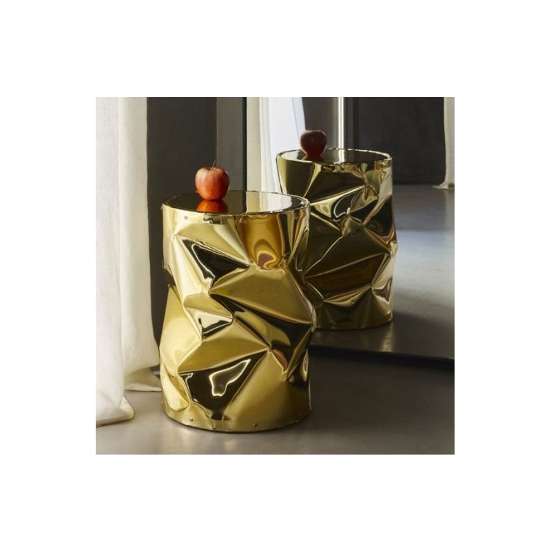 Tab-U by Opinion Ciatti: A Versatile and Fascinating Stool Tab-U, Bruno Rinaldi's masterpiece for Opinion Ciatti, is an unmistakable stool that captures attention in any space. Its solid wood structure, hand-coated in "crumpled" aluminum, not only provides durability but also adds a touch of rustic elegance. A "Joker" Object for Every Space: Tab-U is much more than a common stool. It's a real "joker" object that fits perfectly into every situation. It's the unexpected guest at the dining table, a practical support in the bathroom for objects or towels, a welcoming solution in the living area when the sofa is already occupied, or even an original substitute for the traditional bedside table in the bedroom. Versatile and Functional Design: Thanks to its versatile design and sturdy construction, Tab-U suits any decor. Its ability to adapt to different uses makes it a perfect addition to both modern and traditional homes. With Tab-U, there are no limits to creativity and practical use of spaces. 100% MADE IN ITALY Dimensions: d 30 x h 43 cm Sku: TAB-UOROH.43T Finish: Gold