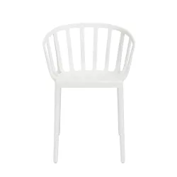 VENICE CHAIR, 5806 - KARTELL A homage to the city of Venice is embodied in a dining chair that can also be used in the living room, seamlessly blending classic lines and comfort. This is achieved through the distinctive style of its shape, which reinterprets the ambiance of the timeless chairs found in the historical cafes of Venice. Structure material: Mass-Coloured Polycarbonate And Soft Touch Treatment Fireproof: Not Fireproof Usage: Indoor and Outdoor Dimensions: H 75 cm, W 51 cm, D 51 cm Seating height: 46 cm