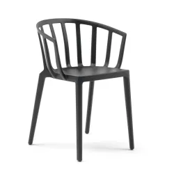 VENICE CHAIR, 5806 - KARTELL A homage to the city of Venice is embodied in a dining chair that can also be used in the living room, seamlessly blending classic lines and comfort. This is achieved through the distinctive style of its shape, which reinterprets the ambiance of the timeless chairs found in the historical cafes of Venice. Structure material: Mass-Coloured Polycarbonate And Soft Touch Treatment Fireproof: Not Fireproof Usage: Indoor and Outdoor Dimensions: H 75 cm, W 51 cm, D 51 cm Seating height: 46 cm