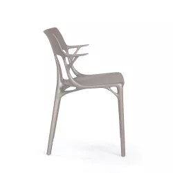 AI CHAIR 5886 - KARTELL Kartell continues its ongoing commitment to sustainability with eco-friendly products which are part of the broader project expressed by the industrial manifesto Kartell loves the planet. Structure material: Recycled thermoplastic technopolymer with mineral filler and soft touch treatment Material: Tecnopolymer Fireproof: Not Fireproof Usage: Outdoor Height: 81 cm Width: 54 cm Depth: 53 cm Seating height: 45 cm