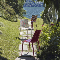 The H.H.H. - Her Highest Highness chair, designed by Philippe Starck for Kartell, redefines the concept of seating with timeless elegance and an imposing presence. More than just a chair, H.H.H. is a style icon that transforms every moment into a regal experience, inviting users to engage with its essence. Crafted from recycled thermoplastic technopolymer with mineral filler, this masterpiece is available in various finishes, including recycled leather with green tanning in black and leather tones, eco-friendly textures in black and tobacco, and a stunning super glossy finish in white, black, burgundy, rust, mustard, blue, and green. For those seeking exclusivity, the Kartell x Liberty collection offers upholstery in six Liberty fabrics with vibrant floral prints. Always at the forefront of technological innovation, Kartell introduces a unique graphic impression featuring four floral and geometric patterns in a variety of colors.