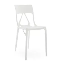 The A.I. Lite chair by Kartell, designed by Philippe Starck, embodies the evolution of intelligent and sustainable design. Made of recycled thermoplastic technopolymer with mineral filling and a soft-touch finish, it reflects the concept of “more and less.” Its armless structure enhances the lightness and clean lines of the original A.I. design, offering comfort and versatility. Elegant, modern, and functional, it adapts effortlessly to both home and professional environments, expressing a refined sense of minimalism.