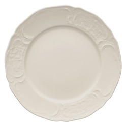The 31 cm charger plate from Rosenthal's Sanssouci collection embodies timeless elegance in classic porcelain. Featuring an intricate design of intertwined vines and flowers, it is inspired by the stucco ceilings of Sanssouci Palace, created for Frederick the Great. First introduced in the 1920s, this design is produced under license from Königliche Porzellan Manufaktur, preserving its original charm.