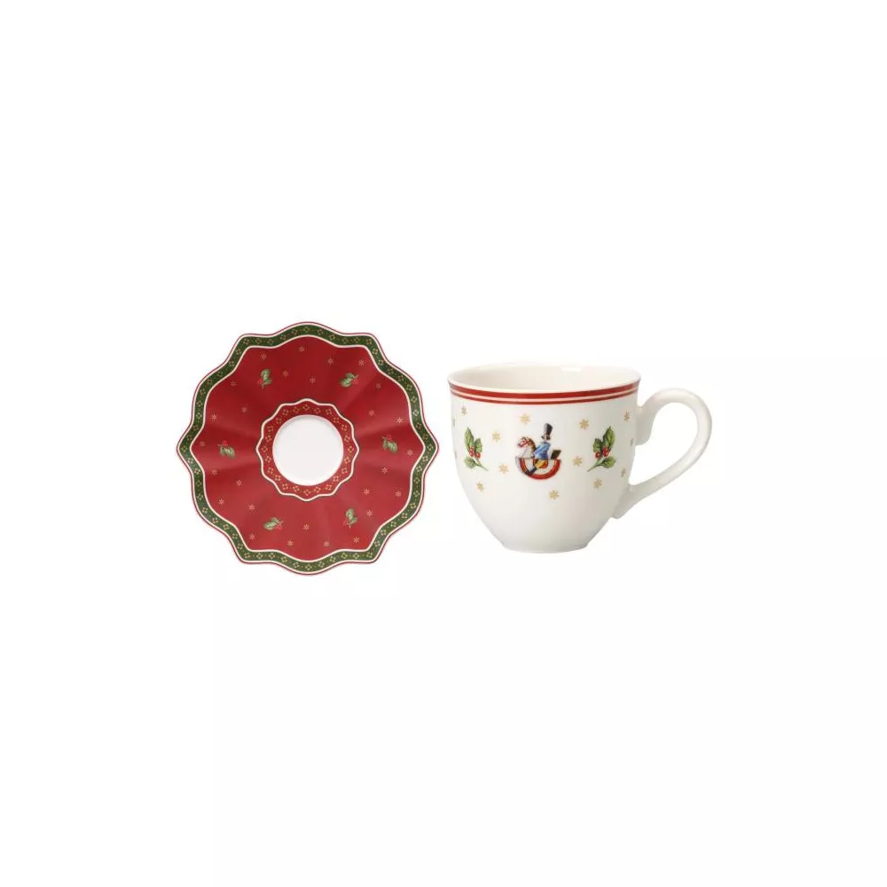 Coffee cup with saucer Immerse yourself in the nostalgic atmosphere of Christmas with Villeroy & Boch's Toy's Delight collection. This porcelain cup, delicately adorned with red, green, and white motifs, evokes sweet childhood memories. Material: Premium Porcelain DISCOVER THE COLLECTION: Toy's Delight, Villeroy & Boch's Christmas