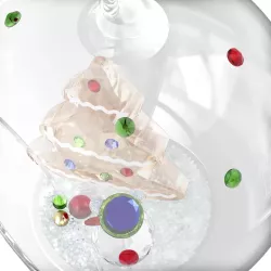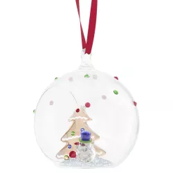 This delightful ornament captures the magic of Christmas with playful elegance. Suspended from a red grosgrain ribbon, the glass sphere encloses a golden tree and a cheerful snowman. Featuring 763 precision-cut facets in multiple colors and details such as Moonlight-effect Crystal Rocks, it evokes festive joy and childhood memories. Decorative object, not a toy. Not suitable for children under 15.