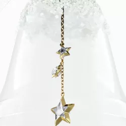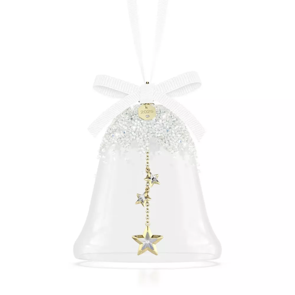 The Bell Ornament 2025 from Swarovski’s Annual Edition collection brings festive brilliance to any holiday décor. Crafted from clear glass and adorned with approximately 1,300 crystals, it features an inner star-shaped clapper with 109 facets and a champagne-gold tone metal finish. Hanging from a white grosgrain ribbon with a “2025” engraved tag, this piece combines delicate beauty and harmonious sound, making it a refined highlight for the holiday season.