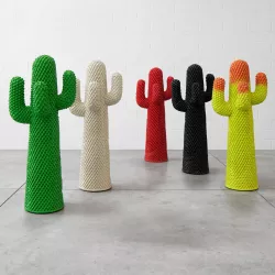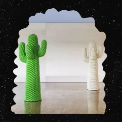 Towering like a human figure, Gufram’s Cactus, created in 1972 by Guido Drocco and Franco Mello, has become an icon of Italian Radical Design. Originally conceived as an eccentric coat rack, it redefined the boundaries between art and everyday objects. Handcrafted from soft polyurethane with four arms and 2156 individually painted thorns using the exclusive Guflac finish, it embodies a dialogue between craftsmanship and avant-garde creativity. Available in three distinctive versions – green, white, and black – Cactus transforms nature into a pop and sculptural statement, balancing warm natural tones, ivory shades, and deep enigmatic hues.