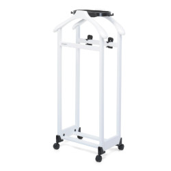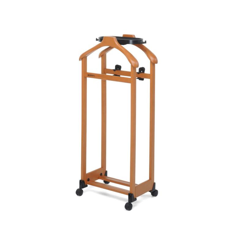 CLOTHES HANGER, IL METTINSIEME - FOPPA PEDRETTI Bedroom clothes stand with two shoulders. Solid wood structure. Equipped with an accessory tray and skirt hangers. The shoe base has swivel wheels. Dimensions in cm: (Height, Depth, Length) H 103 x D 27 x L 46 cm