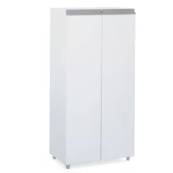 The Scar-pulì wooden shoe cabinet by Foppapedretti offers a stylish and practical solution for shoe storage. Featuring double doors and 7 grids, it helps organize shoes efficiently while taking up just 33 cm in depth. The perforated back panel ensures ventilation, keeping footwear fresh. Available in four color options, it complements any interior design.