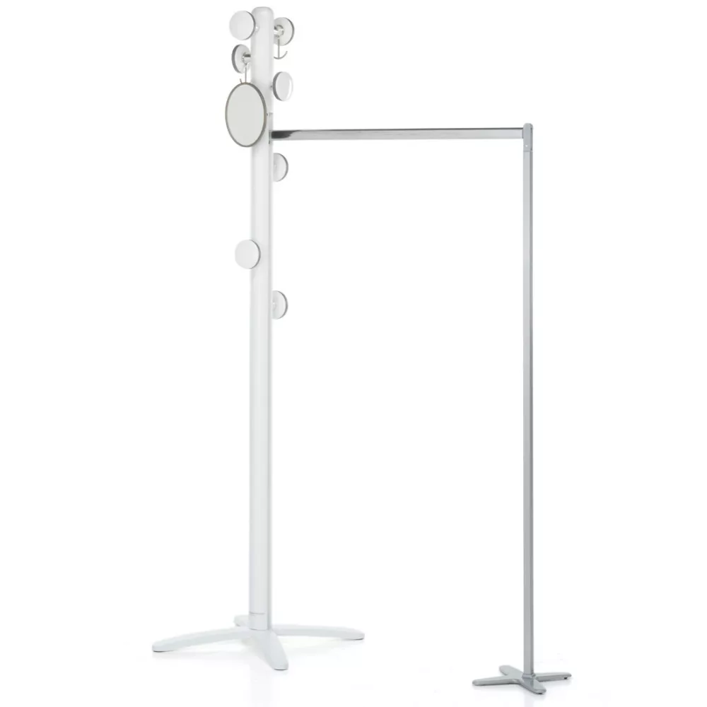 EXPANDABLE LUX COAT STAND - FOPPA PEDRETTI The Expandable Lux coat stand by Foppapedretti is an extendable clothes rack made of beech wood, featuring a retractable shoulder bar that extends up to 80 cm. Practical and elegant, it has 7 non-slip clothes knobs, two hooks, and a small mirror. Open dimensions in cm: H 177 | D 44 | W 111 Closed dimensions in cm: H 177 | D 44 | W 44 Net weight: 6 kg
