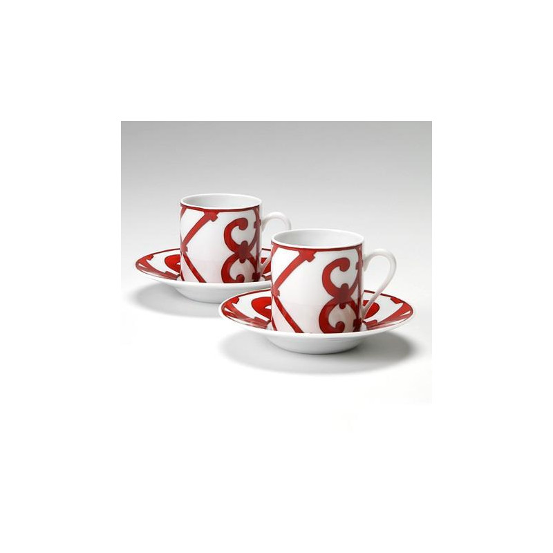 Hermes Balcon Du Guadalquivir Coffee Cup & saucer Along the banks of the Guadalquivir in southern Spain, Andalusian homes proudly display the lace-like patternsof their wrought-iron balconies. This porcelain collection highlights their exuberance in a fiery red hue. Capacity: 9 cl Material: porcelain Code: 11017P For all Hermès products that are not available at the time of purchase, please consider a delivery time of 6 to over 12 months