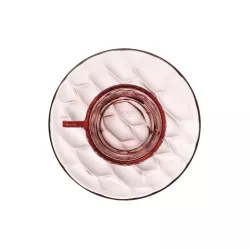 COFFEE CUP WITH SAUCER, JELLIES FAMILY 1582 - KARTELL This line of plates, trays, glasses, bowls, and carafes offers a wide selection of products made from brilliant, colored, and transparent PMMA. What makes this line unique is that each design features a different pattern inspired by nature and organic shapes, reminiscent of traditional molds used for making jellies in kitchens. These patterns highlight the temporality and variety that characterize each stage of the meal, from the initial course to the final one. The delicate, soft, and easily combinable transparent colors allow for setting vibrant tables, whether they be creative and original or more classic and monochromatic. Material COLORED PMMA IN MASS DISCOVER THE COLLECTION: Jellies Family Kartell