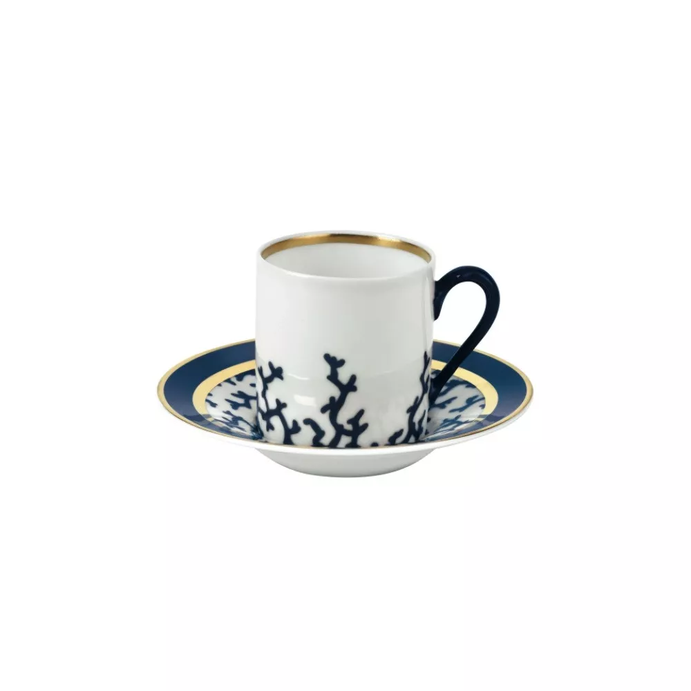 Designed by Alberto Pinto for Raynaud. Cristobal is a dish served with a saturated and opulent design touches that characterize a unique and impactful elegance as a hallmark of this talented decorator. A set available in coral, turquoise and navy for an original and elegant table. Saucer included Design : Alberto Pinto Reference : 013/013 Saucer diameter : 5,6 cm Height : 6 cm Cont : 13 cl Material : Porcelain