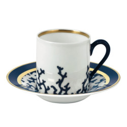 Designed by Alberto Pinto for Raynaud. Cristobal is a dish served with a saturated and opulent design touches that characterize a unique and impactful elegance as a hallmark of this talented decorator. A set available in coral, turquoise and navy for an original and elegant table. Saucer included Design : Alberto Pinto Reference : 013/013 Saucer diameter : 5,6 cm Height : 6 cm Cont : 13 cl Material : Porcelain