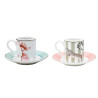 SET OF 2 COFFEE CUPS WITH SAUCERS, CHEETAH AND PARROT A22004016 - YVONNE ELLEN This Yvonne Ellen set includes two coffee cups with saucers, each featuring hand-drawn designs of a cheetah and a parrot. Perfect for enjoying your morning espresso, both cups have pastel-colored designs and come in a box package. These cups are made from fine bone china/porcelain and should be hand washed only. It should be noted that they are not suitable for use in the microwave or dishwasher.