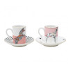 SET OF 2 COFFEE CUPS WITH SAUCERS, DOG AND PARROT A22004017 - YVONNE ELLEN This Yvonne Ellen set includes two coffee cups with saucers, each featuring hand-drawn designs of a dog and a parrot. Perfect for enjoying your morning espresso, both cups have pastel-colored designs and come in a box package. These cups are made from fine bone china/porcelain and should be hand washed only. It should be noted that they are not suitable for use in the microwave or dishwasher.
