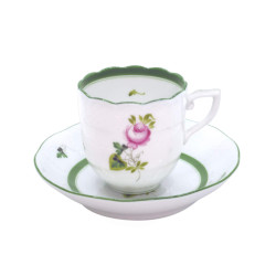 Coffee cup with saucer, plate 11 cm and cup diameter 6 cm Material: fine china with gold decorations Code: 1727 Hand wash recommended. Never microwave an item with gold or platinum trim