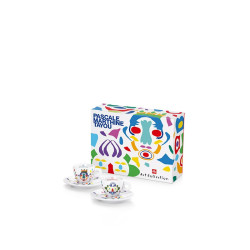 ALESSI MAMI Coffee cup with plate, in white china. Mami tableware offers a rich collection of cups to suit everybody's tastes and habits. The filtered coffee cup is perfect for sipping any hot drink, especially American coffee. The cup is made of white porcelain. code: SG53/76 + SG53/77 Diameter (cm): 8.00 Content (cl/oz): 20.00