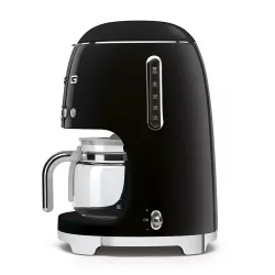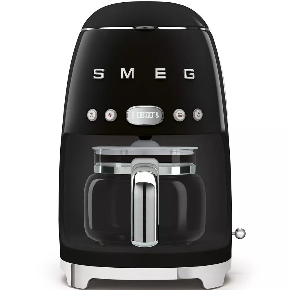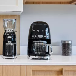 The Smeg DCF02 drip coffee machine brings the American coffee ritual to life with iconic 50s design and reliable performance. Designed to add character to the kitchen, it allows aroma intensity adjustment on two levels and water hardness settings for consistently balanced results. The keep warm function maintains coffee temperature for up to 40 minutes, while the 1.25 l glass carafe ensures practical and convivial serving. A perfect blend of timeless aesthetics, everyday functionality and the perfect gift for filter coffee lovers.
