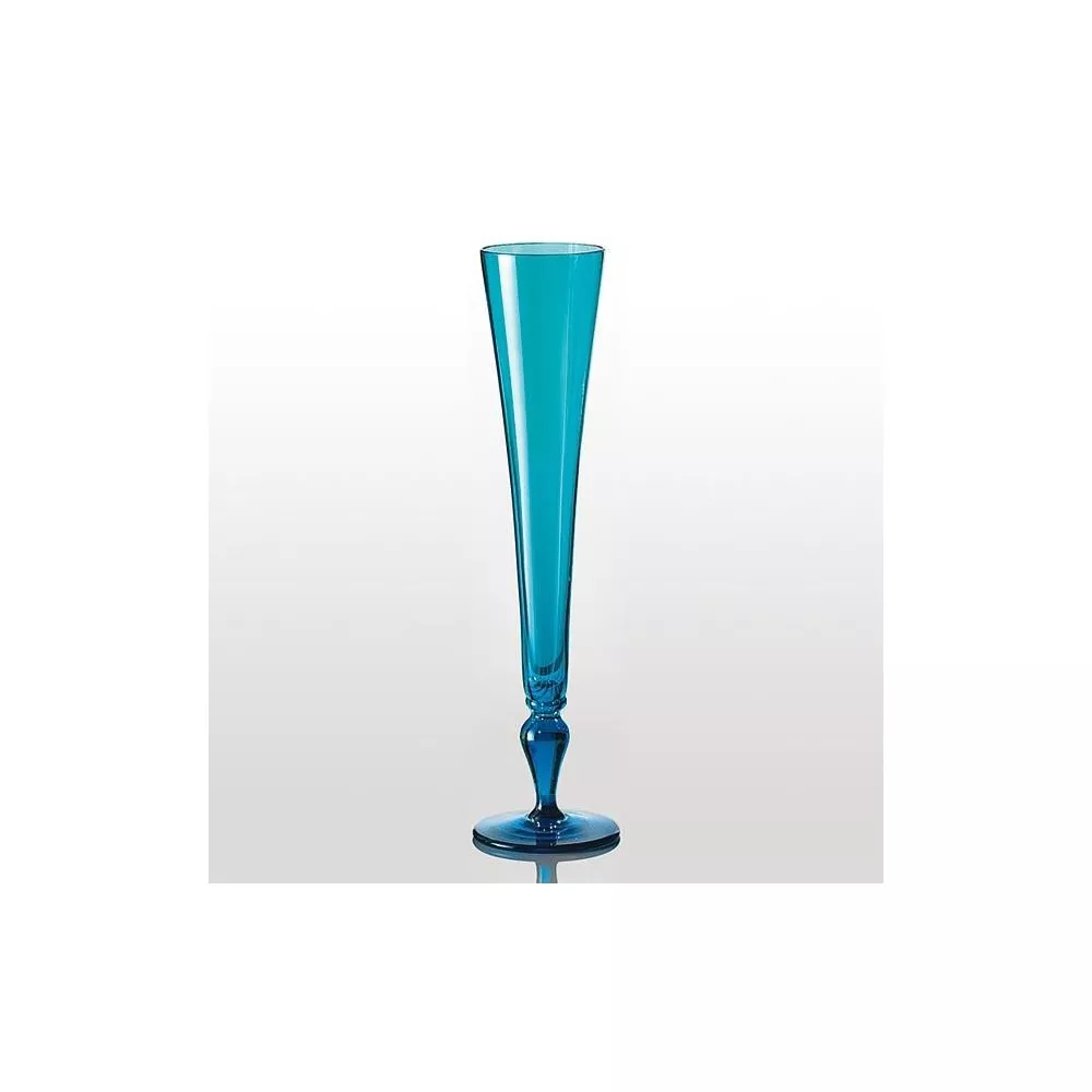 Excess Flute - Hand-blown Murano Glass - NasonMoretti Height 29 cm - Diameter 6 cm The Excess flutes grows upright as colored blubells. They can be protagonist of a playful happy hour with friends or brighten up a simple and elegant table, thanks to the twelve shades in which they are proposed.