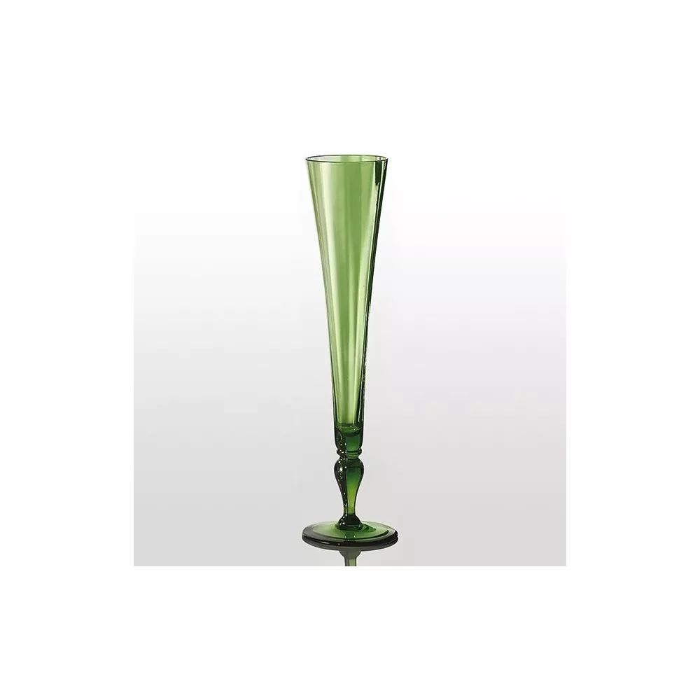Excess Flute - Hand-blown Murano Glass - NasonMoretti Height 29 cm - Diameter 6 cm The Excess flutes grows upright as colored blubells. They can be protagonist of a playful happy hour with friends or brighten up a simple and elegant table, thanks to the twelve shades in which they are proposed.